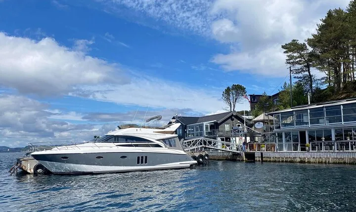 Private yacht cruise from Bergen to the best seafood restaurant in Bergen, located on an island only accessible by boat.