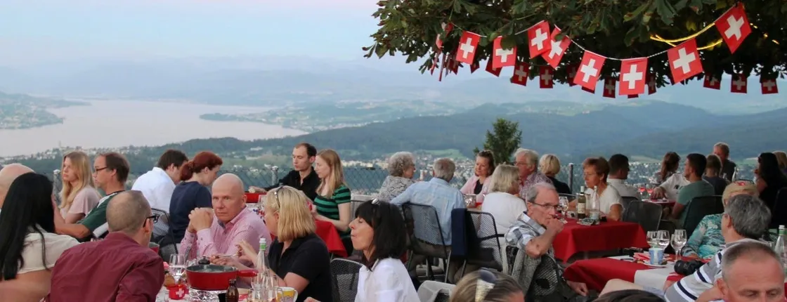 Enjoy a cozy night in Zurich on this evening tour. After a short introductory city tour, get out of the busy town and visit the Lindt Chocolate Shop. Enjoy then a ride uphill by aerial cable car to the panorama restaurant Felsenegg where you will have a delicious 4-course meal including a typical Swiss cheese fondue. The tour starts with a short introductory drive through the city. Heading towards the lake, you get a glimpse of the world-famous shopping avenue "Bahnhofstrasse". Continue to the small town of Kilchberg, home of the headquarters of the world-famous chocolate factory Lindt & Sprüngli. Then you continue to Adliswil, where the only aerial cable car in the Canton of Zurich takes you to the hilltop station "Felsenegg". Located on the Albis chain, this area is one of the most popular recreational zones of greater Zurich. It is only a short hike through the magical forest to get to the restaurant overlooking Lake Zurich. Enjoy the breathtaking view on the terrace and delight a choice of appetizers while you freshen-up with a glass of white wine in summer or warming-up with the freshly prepared "Glühwein", a traditional hot, spicy wine in winter. Then step inside the cozy Swiss restaurant and get seated at the traditionally decorated table. An assorted bowl of salad is followed by the outstanding original Swiss cheese fondue. To complete your culinary experience, a homemade chocolate cake is served.