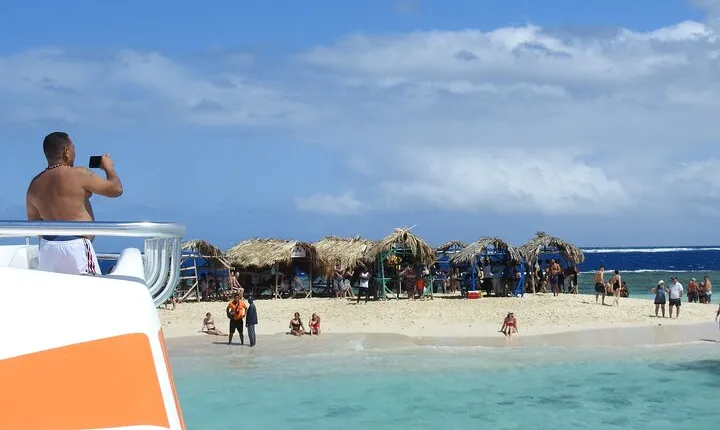 We will take a road tour of beautiful country landscapes to the Castillo de la Isabela, where we will board the catamaran "THE OCEAN KING" DELUXE with solarium and slide!, It will take you on a journey along the coast of La Ensenada beach with beautiful landscapes up to the natural pool with crystal clear water, where you can slide down the slide, enjoy Caribbean music and drink cider.